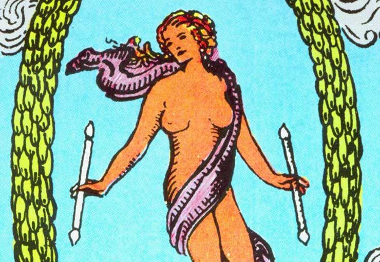 The androgynous World card from the Rider-Waite deck, drawn from the work of Eliphas Levi (Simon Ganneau’s student) in attributing the Tarot to the Tree of Life.